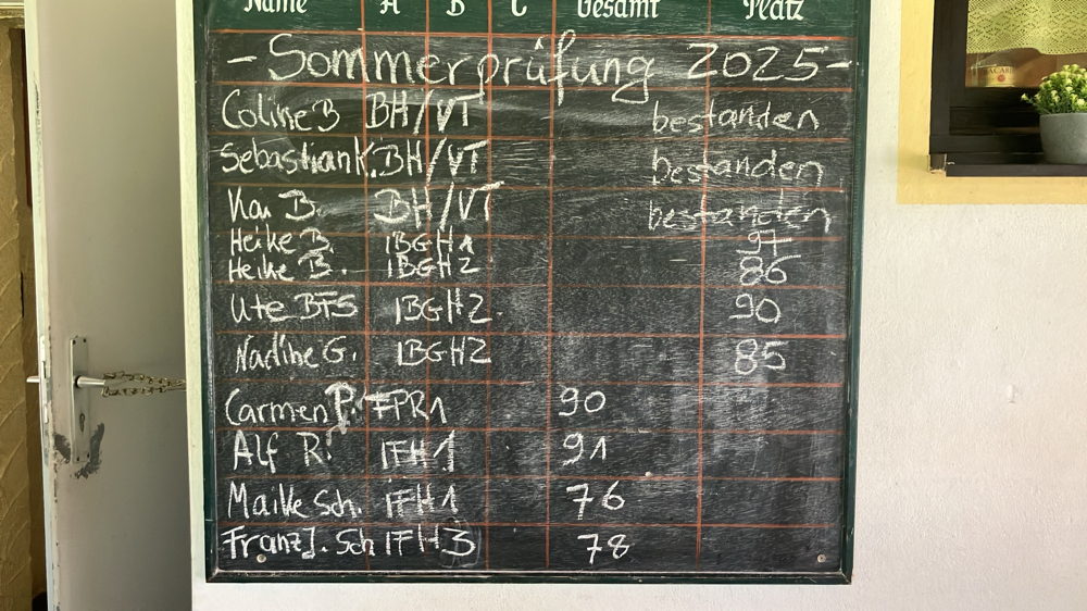 Zwei von 3 Prüflingen, die die Begleithundeprüfung absolvierten, mussten vorher noch den schriftlichen Nachweis ablegen (SKN = Sachkundenachweis).